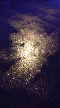 夕焼けのような電灯の光に照らされて、アスファルトが黄金色に染まります。 その景色が大好きです。